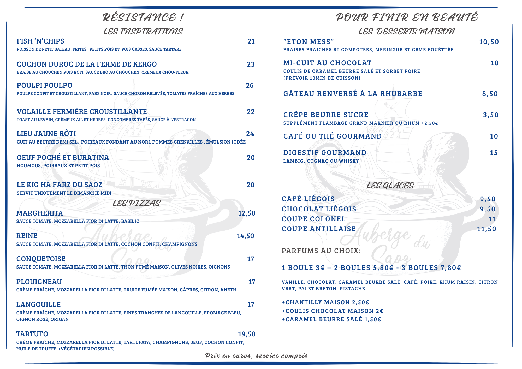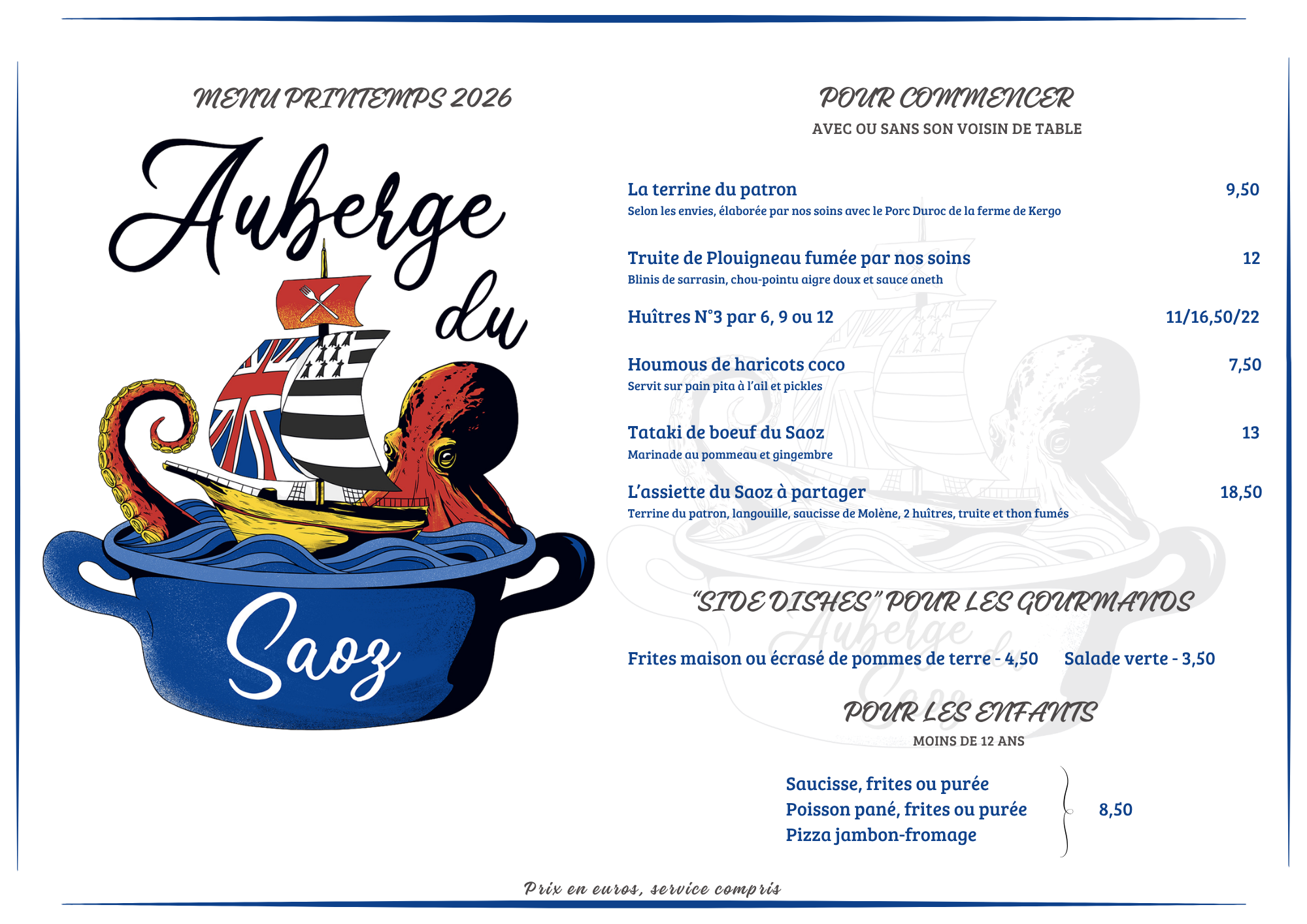 Le menu du restaurant au Conquet